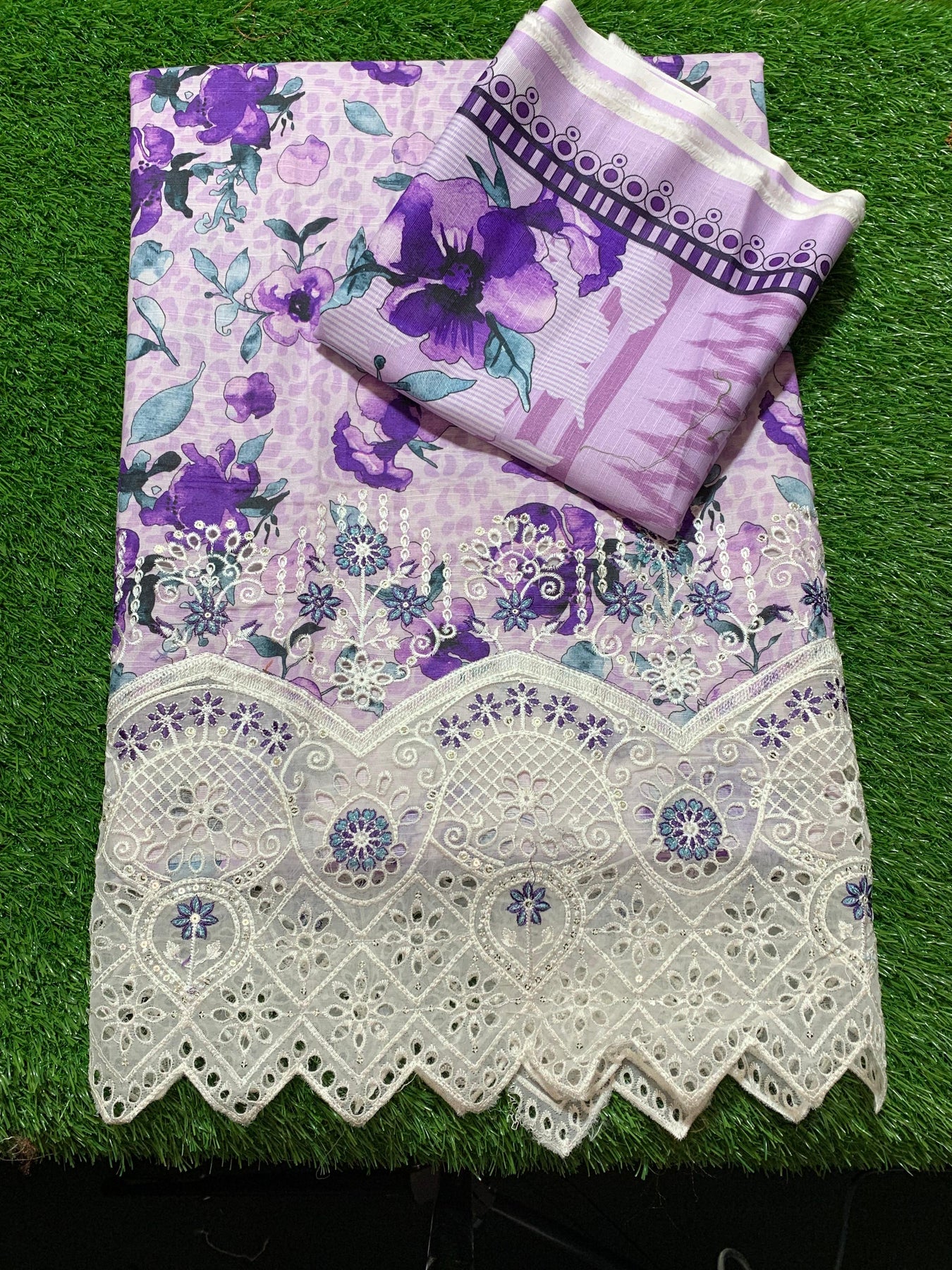 Experience refined winter elegance with this Premium 3-Piece Slub Khaddar Suit, showcasing intricate daman embroidery and delicate boring patchwork