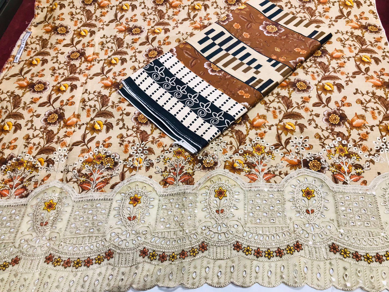 Premium 3-Piece Slub Khaddar Suit, crafted with delicate daman embroidery and refined detailing.