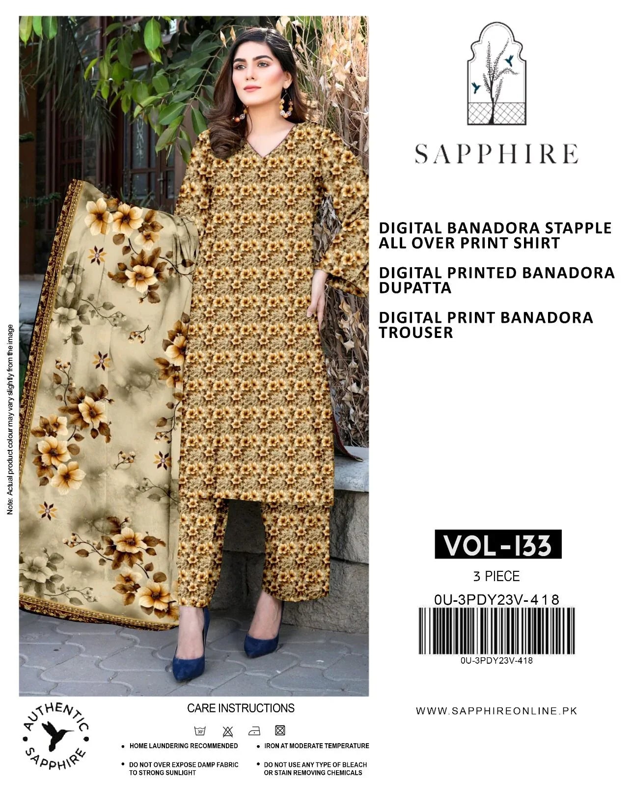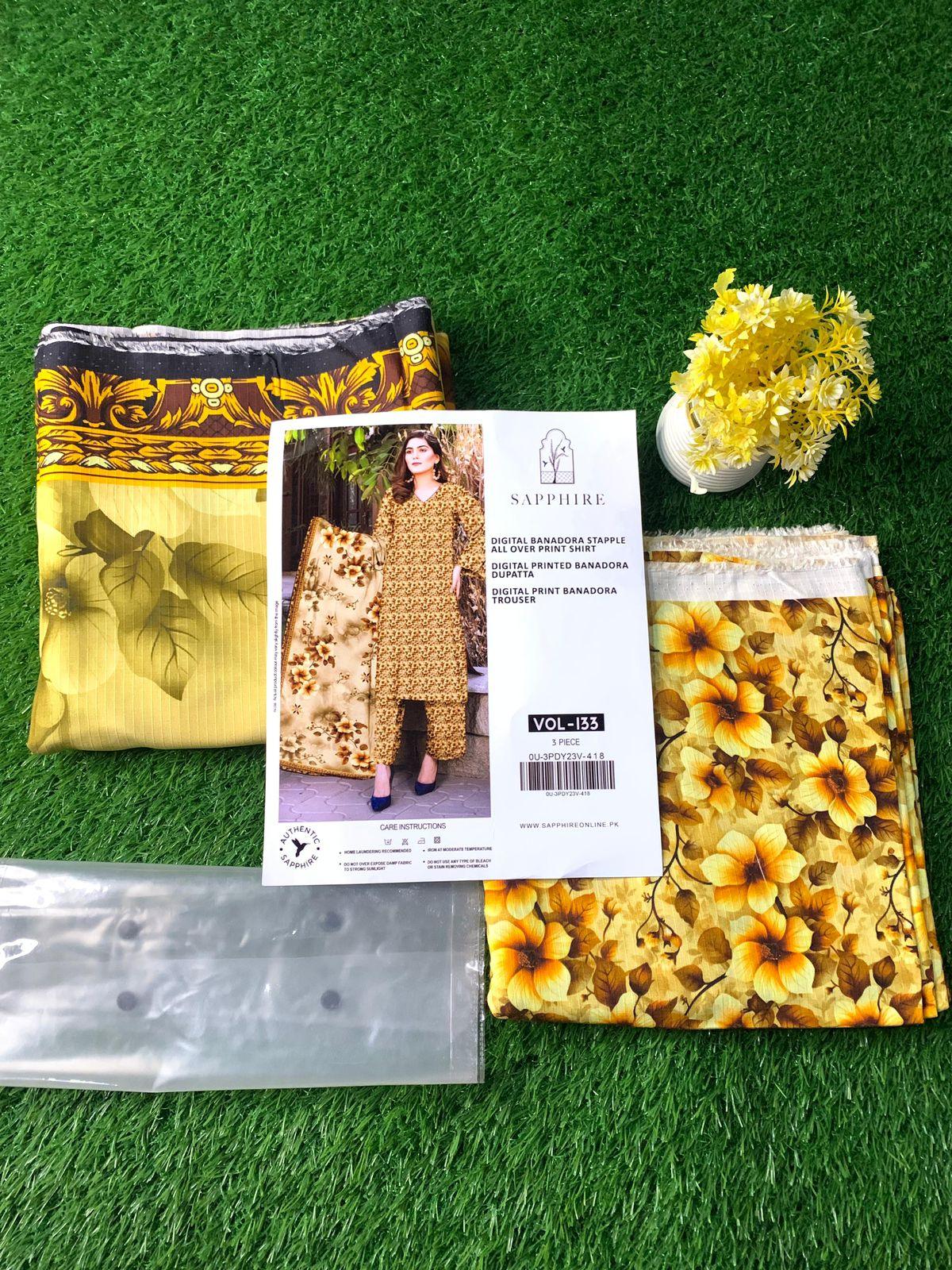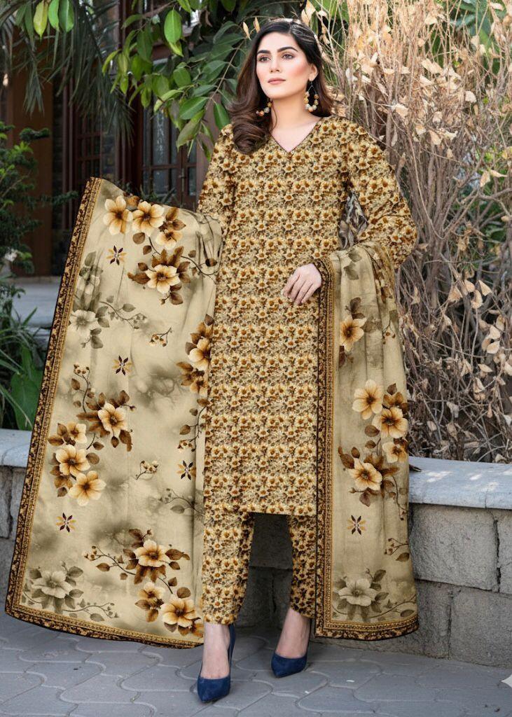 This full 3-piece suit comes from the popular collection, featuring rich, saturated colours that make a bold style statement. The package gives you matched fabric for the shirt, dupatta, and trouser.